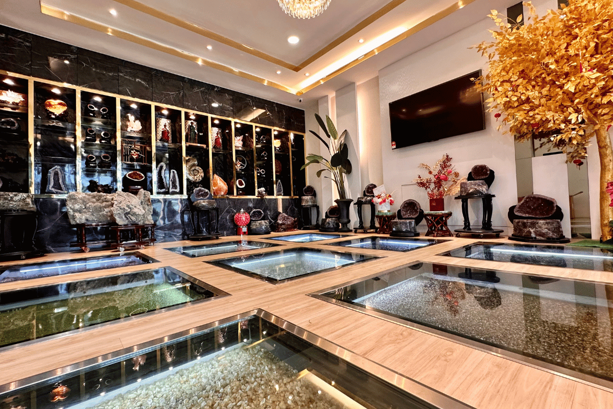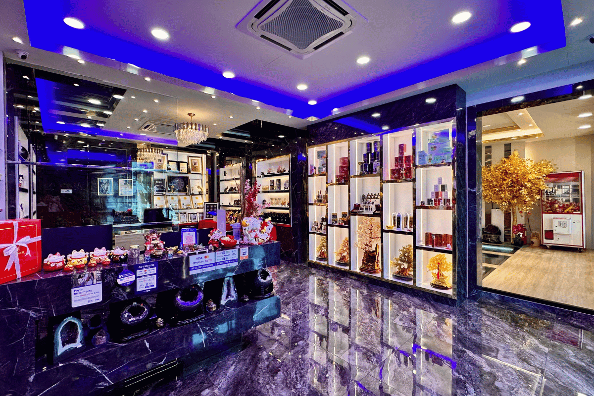 Beroperasi dari pusat lapangan terbang yang sibuk di Melaka, WISMA 123 Live Mall adalah pusat perdagangan terintegrasi yang terdiri dari lima bangunan yang berhubung antara satu sama lain. Dalam butik kami, terdapat bilik pengalaman mineral kristal semulajadi yang unik, pengalaman air tenaga, dan dewan Buddha yang mewah—elemen-elemen yang tidak dapat ditemui di tempat lain di Malaysia. Kami juga memiliki gudang persendirian seluas 20,000 kaki persegi. Dengan dua cawangan bebas beroperasi di Kemboja dan pembangunan berterusan, kami bertujuan untuk memperluas kehadiran kami ke negara-negara lain pada masa depan.