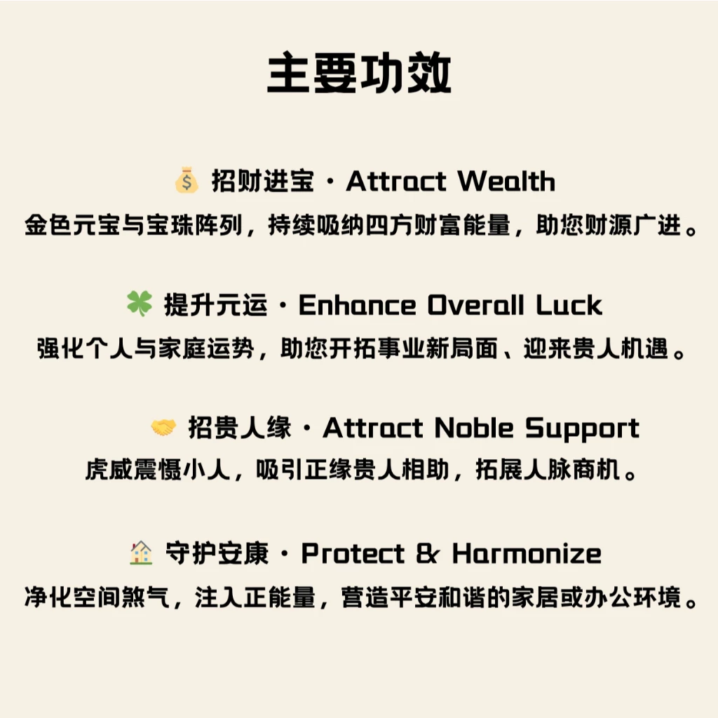 由御用林师傅亲自开光,激发金虎爷护佑能量,守护事业与家运。