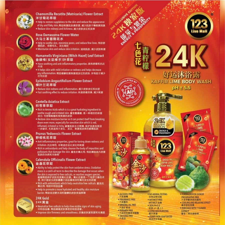 ✨ 升级版 24K 金沙七色花青柠檬沐浴露 ✨